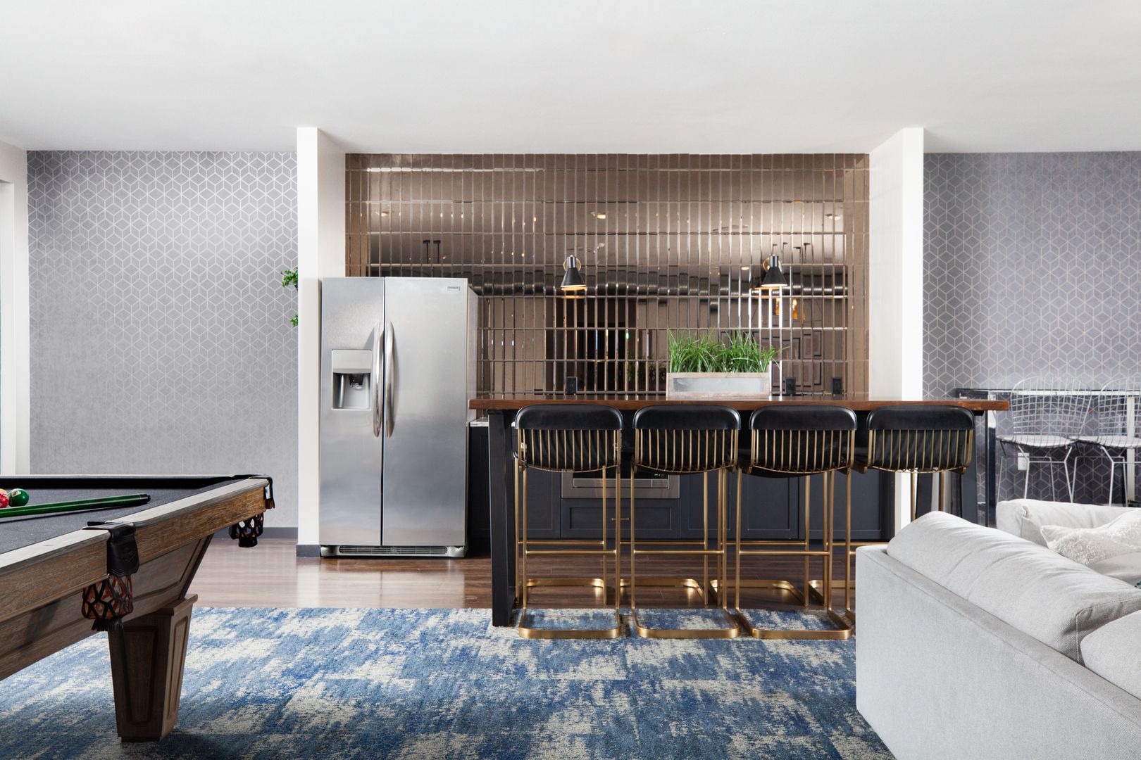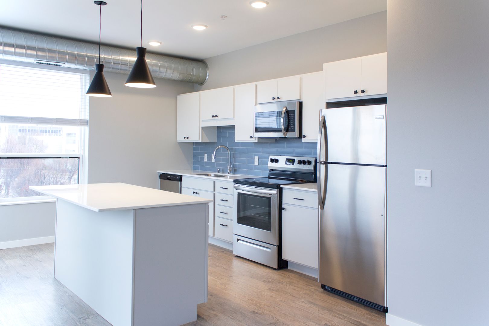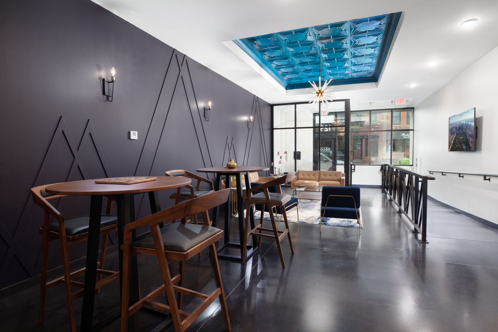 The DECO's alcoves, one-, and two-bedroom units are artfully designed with hand-picked finishes. The two-tone cabinets, quartz countertops, stainless steel appliances, and island with pendant lighting elevate each unique floor plan. You will also love the nine-foot ceilings, ample storage space and private balconies.